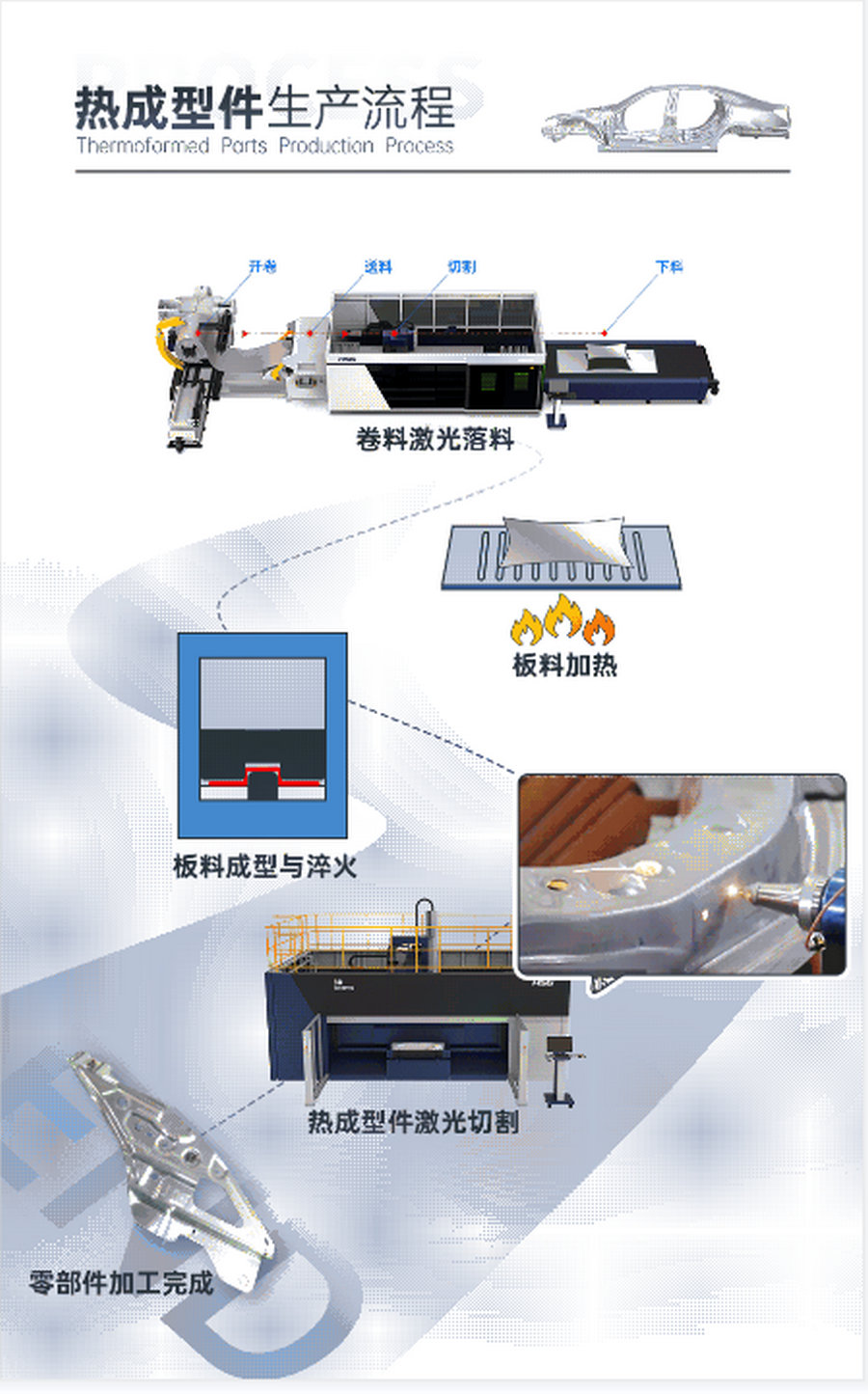 投身全球技術(shù)競賽,宏山激光Cell3015G三維五軸激光加工中心為中國制造業(yè)可持續(xù)發(fā)展注入新的生命力,作為汽車熱成型件專業(yè)解決方案,給汽車行業(yè)的發(fā)展帶來了驚喜與突破,配合3頭3梁卷料激光切割機(jī),“穩(wěn)將”煥新,提質(zhì)增效,核心競爭力更上一層樓。